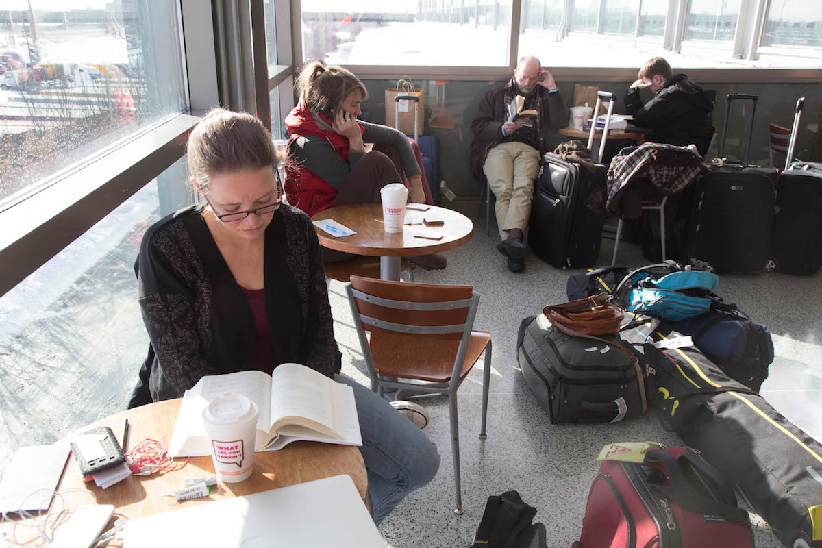 Jon and Ann make the most of comically bad winter weather delays coming home from a trip to Texas. A surprisingly enjoyable 12-hour date in the unheated Amtrak station at the Newark airport ensues.